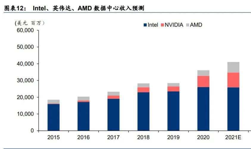 2) 2020 年,英伟达收购 Mellanox 和 ARM(进行中)。宣布收购后,英伟达针对数据中 心市场分别推出了 BlueField DPU(数据处理单元)和 CPU 产品。DPU 定位为卸载 CPU 上的网络、存储、安全等方面的任务。英伟达表示,一颗 BlueField-2 DPU 能提 供相当于 125 个 CPU 核所能支持的数据中心服务。DPU 类似的产品为智能网卡 (SmartNIC),除了英伟达,Intel、Broadcom、Xilinx、Marvell 均在领域有所布局。