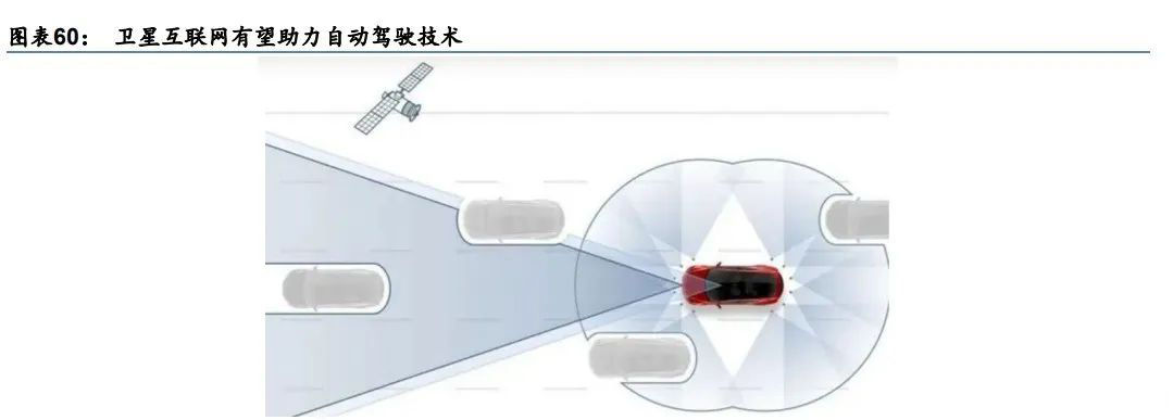 实现自动驾驶的前提是实现汽车与云之间的稳定、高速的数据传输,卫星互联网为实现这 一技术提供了可能。卫星互联网作为天然的全球网,具有全球范围的广域覆盖能力,能够 为自动驾驶服务提供连续稳定的网络连接,提升自动驾驶的安全性和可靠性。此外,相对 于地面基站在局部地区信号带宽的固定性,卫星通信可以提供具有一定容量弹性的服务, 保证在拥堵地区仍能够提供稳定的接入服务。马斯克之后,其他汽车制造商也在积极探索 卫星互联网在车联网中的应用,包括蔚来汽车(0305 HK)、威马汽车(未上市)、小鹏汽车 (XPEV US)等。